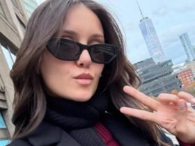 In the men’s line, brocade reappeared on cargo trousers, paired with a checked turtleneck zipped up the back. Leather jackets, neoprene-lined sweatshirts, voluminous cable knits, and neatly tailored Prince of Wales coats piled on the laid-back swagger.
